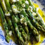 - Plate and garnish: Transfer the grilled asparagus to a serving platter. Drizzle with fresh lemon juice, sprinkle the lemon zest evenly over the asparagus, and top with crumbled feta cheese. Optionally, garnish with chopped fresh parsley for added color and flavor.