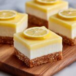 - Slice and Garnish: After chilling, cut the dessert into bars and optionally top each square with whipped cream and lemon slices for a decorative and tasty finish.