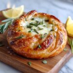 Lemon Curd Herbed Baked Brie is a luscious appetizer featuring a creamy wheel of Brie topped with tangy lemon curd, fresh herbs, and optional nuts. You can serve it simply baked or wrapped in golden puff pastry for an elegant touch. Perfect for holiday gatherings or any special occasion, this French-inspired dish balances sweet, tangy, and savory flavors.
