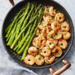 From start to finish, this Lemon Garlic Shrimp and Asparagus Recipe takes about 20 minutes, making it perfect for busy weeknights or quick lunches.