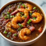 A classic Louisiana Seafood Gumbo combining rich homemade roux, tender chicken, smoky andouille sausage, and fresh seafood in a deeply flavorful, spiced broth. This hearty dish is simmered to perfection and traditionally served over white rice, capturing the essence of Cajun and Creole cooking.