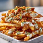 - These fries are best served immediately to enjoy their crispy texture and creamy toppings.
