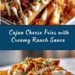 Once the fries are out of the oven, sprinkle them generously with Cajun seasoning to amplify the flavor. Toss gently to mix, then drizzle with the ranch dressing and about ¼ cup of your heavenly cheese sauce. Serve immediately with extra cheese sauce and ranch dressing for dipping to complete the experience.