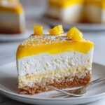 A little decoration goes a long way with this cheesecake. Fresh mango slices or small cubes on top add a burst of color and complement the puree inside. You can also dust with powdered sugar or scatter a few edible flowers for an elegant touch that inspires delight before the first bite.