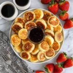 Turn your mini pancakes into a party favorite by threading them on skewers with fruit pieces for pancake kabobs, stacking them into mini towers with layers of jam or Nutella, or even tossing them in a bowl with a scoop of ice cream for a breakfast-for-dessert delight.