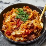 A comforting and flavorful braised cabbage dish featuring smoky pork hock, aromatic spices, and tender cabbage slowly cooked to perfection in the oven. This hearty recipe combines savory and smoky notes with fresh dill, making it an ideal side dish for cozy family meals.