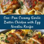 This One-Pan Creamy Garlic Butter Chicken with Egg Noodles is a comforting, easy-to-make dinner perfect for busy weeknights. Tender, seasoned chicken is seared to golden perfection, then simmered with egg noodles in a rich, creamy garlic butter sauce enhanced by Parmesan cheese and fresh parsley. All cooked in one skillet, this dish combines hearty protein and flavorful pasta in a deliciously creamy sauce that’s sure to become a family favorite.
