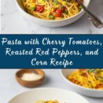 This Pasta with Cherry Tomatoes, Roasted Red Peppers, and Corn Recipe pairs wonderfully with a crisp green salad dressed simply in lemon and olive oil. Garlic bread or a crusty baguette also makes a perfect accompaniment to soak up every last bit of that glorious sauce.