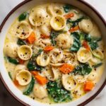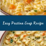 A comforting and easy-to-make Pastina Soup featuring tiny star-shaped pasta cooked in flavorful broth, enriched with delicate egg ribbons and Parmesan cheese, perfect for a quick, warm meal.