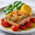 This Pesto Salmon Recipe is a quick and flavorful dish featuring tender salmon filets topped with vibrant basil pesto and a crispy parmesan-panko crust. Perfectly baked in just 20 minutes, it’s an elegant yet easy meal ideal for weeknight dinners or special occasions.
