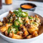 These loaded fries pack enough flavor to stand on their own, but pairing them with a crisp green salad or crunchy pickles can provide a refreshing balance. A cold beer or an ice-cold soda also makes a perfect accompaniment for a casual, satisfying meal.