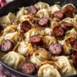 This Pierogies and Kielbasa Skillet Dinner is a quick and hearty one-pan meal that combines tender mini pierogies, savory browned kielbasa, and sweet sautéed onions. Ready in just 25 minutes, it’s perfect for a comforting weeknight dinner that the whole family will enjoy.