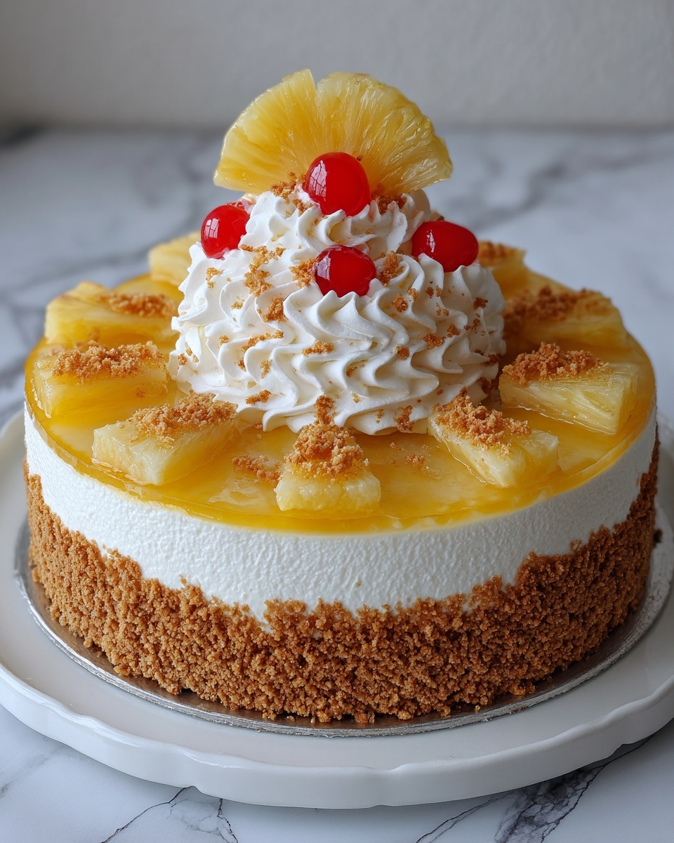 This recipe uses simple, everyday ingredients that work harmoniously to create a cheesecake that’s both familiar and exotic. Each component plays a crucial role—from the crumbly buttery crust that forms the perfect base to the smooth, tangy filling and the caramelized pineapple topping that adds a vibrant pop of color and flavor.