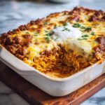 Bake the casserole in your preheated oven for 25 to 30 minutes, until it’s bubbling around the edges and the cheese is melted, gooey, and beautifully browned. When it’s done, let it cool for about 5 minutes to firm up slightly before serving.