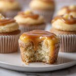 Spoon half of the batter evenly into each muffin cup. Add a dollop of the cream cheese filling in the center—this is the delightful cheesecake surprise inside. Then, cover with the remaining batter. To finish, drizzle or swirl the caramel sauce over the tops of each muffin for that gorgeous, sticky, glossy finish that’s sure to wow.