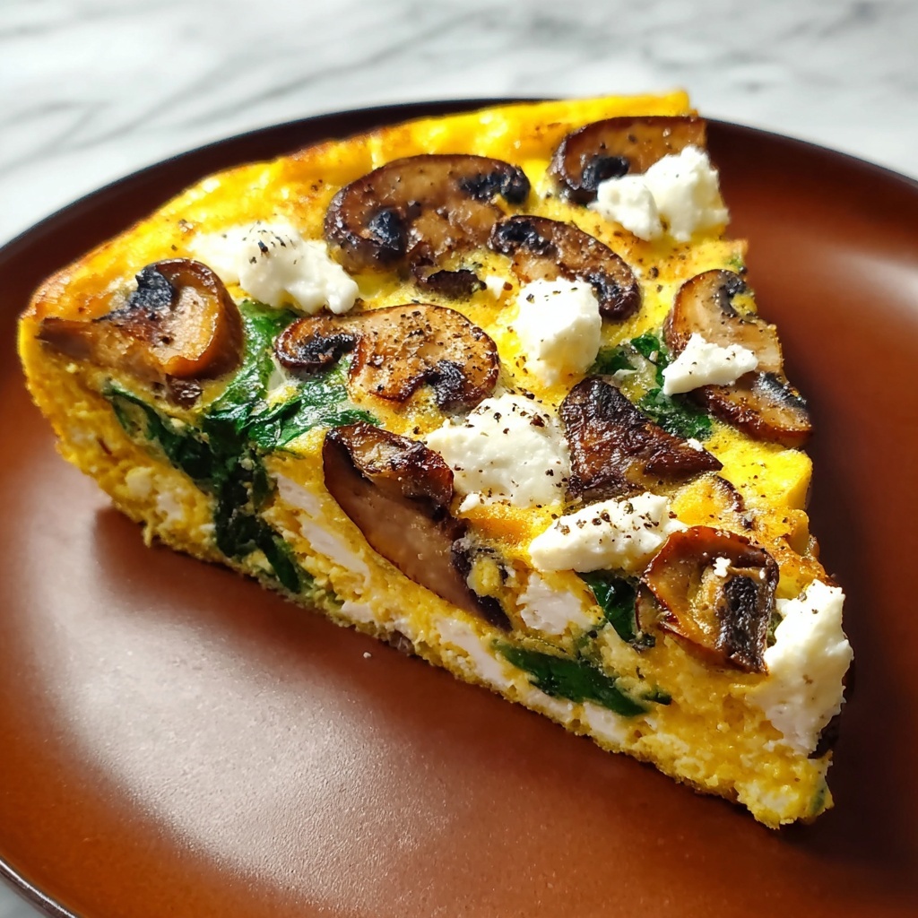 A wholesome and flavorful Pumpkin, Mushroom, and Spinach Frittata perfect for a nutritious breakfast or light meal. This easy-to-make dish combines creamy pumpkin puree with sautéed mushrooms, fresh spinach, and tangy feta cheese, baked to golden perfection.
