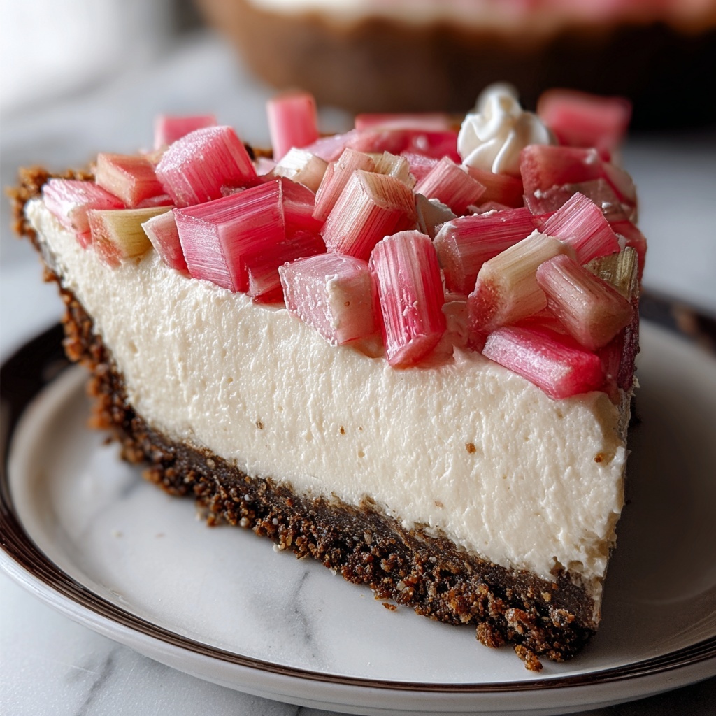 Adding the right garnishes can elevate your Rhubarb Cheesecake Recipe to a whole new level. Try topping each slice with a dollop of freshly whipped cream or a sprinkle of finely chopped pistachios for an extra touch of texture and flavor. Fresh rhubarb ribbons or a few mint leaves also bring vibrant color and a fresh aroma to your presentation.