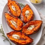 Place your prepared sweet potatoes cut side up on the baking sheet and roast them at 400°F for about 35 minutes. You’ll know they’re ready when they’re fork-tender and bubbling with caramelization. The edges will have a slight crispness, bringing a delightful contrast to the soft interior. This step is where the magic happens, as the roasting develops layers of flavor and texture.