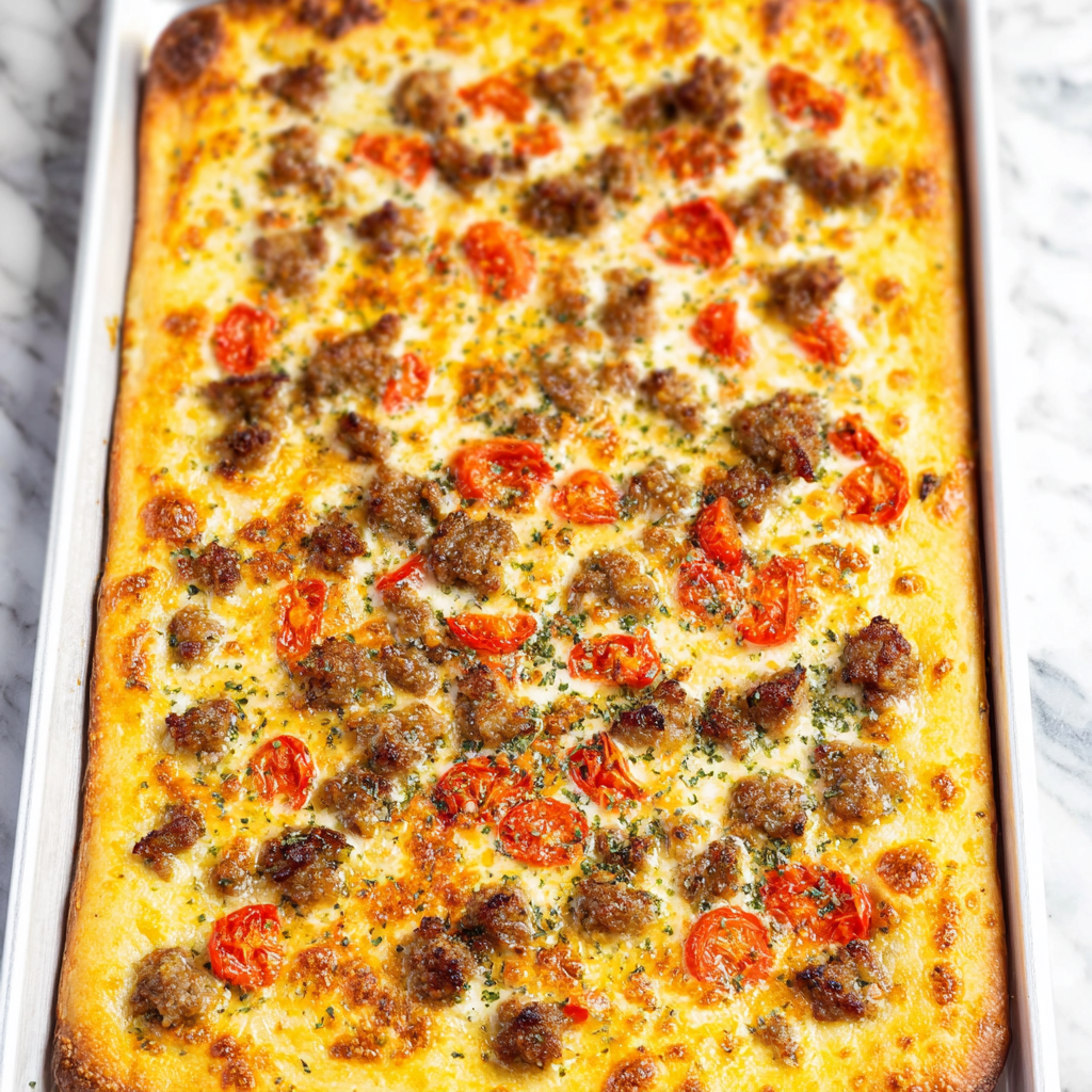 5. Incorporate eggs and sausage: Slowly stir in 4 beaten large eggs until the mixture is well blended. Then fold in the cooked sausage evenly.