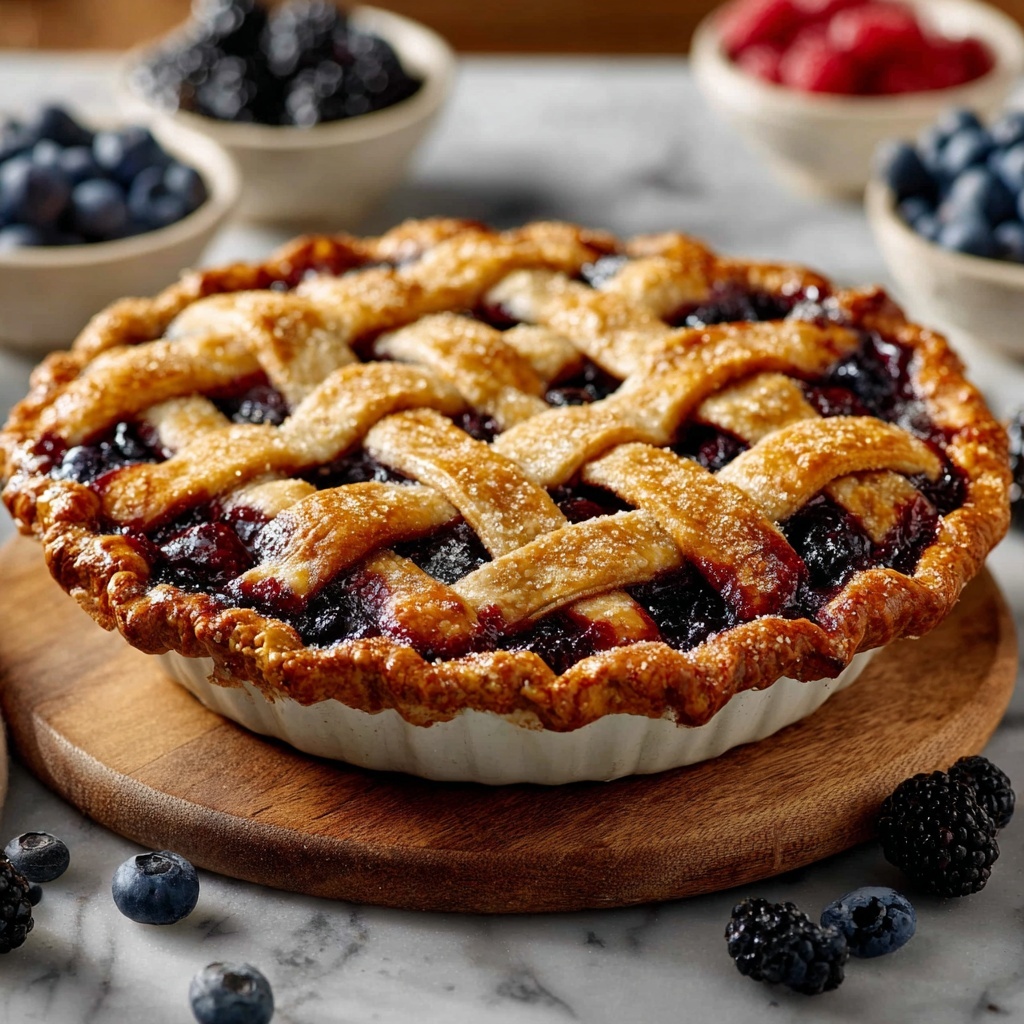 For a rustic touch, serve the pie in a wooden pie stand or on a colorful ceramic plate to highlight the jewel-toned berries. You can also cut the pie into mini hand pies for a fun twist, perfect for parties or sharing with guests without the need for utensils.