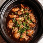 This Slow Cooker Honey Sesame Chicken is a delicious and easy-to-make Asian-inspired dish featuring tender shredded chicken thighs simmered in a flavorful honey soy sauce, thickened to perfection and garnished with sesame seeds and green onions. Perfect for busy weeknights, it cooks low and slow, resulting in juicy, melt-in-your-mouth chicken served best over steamed rice or noodles.