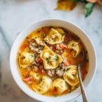 A comforting and hearty Slow Cooker Tomato Tortellini Soup featuring Italian sausage, rich tomato broth, and creamy cheese tortellini, perfect for an easy and flavorful meal.