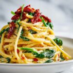Spaghetti & Spinach with Sun-Dried Tomato Cream Sauce Recipe leftovers keep wonderfully in an airtight container in the refrigerator for up to 3 days. Store it when completely cooled to maintain freshness and prevent the sauce from separating. It’s a great dish to make ahead for busy weekdays or to pack for lunch the next day.