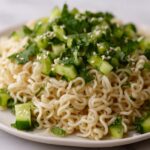 - Garnish and Chill: Sprinkle sesame seeds on top if using. For optimal flavor, chill the salad in the refrigerator for 15 to 30 minutes before serving. Serve cold as a refreshing, spicy noodle salad.