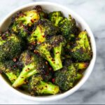 To revive the broccoli’s crispiness, reheat in a hot oven at 400°F (200°C) for 5 to 7 minutes or until warmed through and the edges regain some crunch. Avoid microwaving, which can make it soggy and dull the spices.