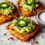 Spicy Smashed Avocado Hash Brown Toasts combine crispy golden hash brown patties topped with a zesty, creamy avocado mash spiced with red pepper flakes and jalapeño. This quick and flavorful breakfast option is finished with optional chili oil drizzle and eggs for added protein, making it a satisfying and vibrant start to your day.