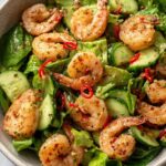 To serve, lay a bed of crispy lettuce leaves or shredded cabbage on your plate and spoon the shrimp salad on top. Arrange the sliced cucumbers alongside for a refreshing crunch. If you love extra texture and nutty flavor, sprinkle some crushed roasted peanuts over the salad. This not only improves the mouthfeel but also boosts the visual appeal with a lovely contrast.