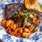 When reheating leftovers, warm gently in a skillet over medium heat, adding a splash of broth or water to bring back moisture and loosen the sauce. Avoid using a microwave if possible, as it can unevenly heat the shrimp and steak, leading to a less enjoyable texture.
