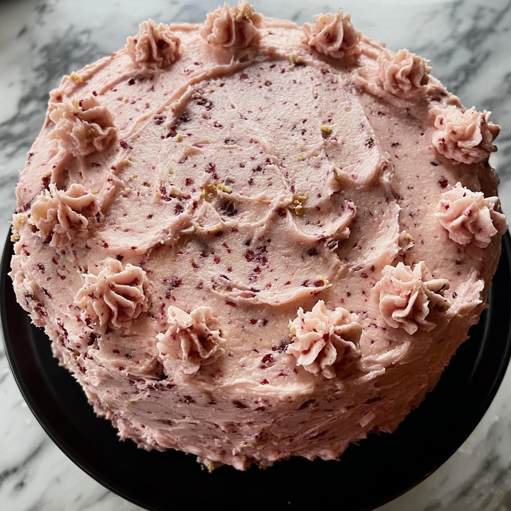 Gently fold the pureed strawberries into the batter. This step adds a natural pink hue and bursts of fresh strawberry flavor throughout the cake.