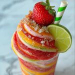 These Strawberry Mango Margarita Cupcakes are a delightful fusion of fruity flavors and festive fun. Featuring a moist vanilla cupcake swirled with vibrant strawberry and mango batters infused with a hint of tequila, they’re topped with a colorful buttercream frosting and finished with a sparkling sugar rim and fresh fruit garnishes. Perfect for parties and celebrations, these cupcakes bring the tropical margarita vibe to your dessert table with a playful twist.