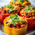 - Garnish and Serve: Once baked, garnish the stuffed peppers with freshly chopped cilantro. Serve warm with lime wedges on the side for squeezing over the peppers to add a fresh, zesty flavor.