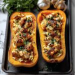 This recipe shines on its own, but if you want to build a meal, consider serving it alongside a crisp green salad dressed with a zingy vinaigrette or some buttery garlic roasted green beans. These sides maintain the balance between hearty and light, complementing the richness of the stuffed squash perfectly.