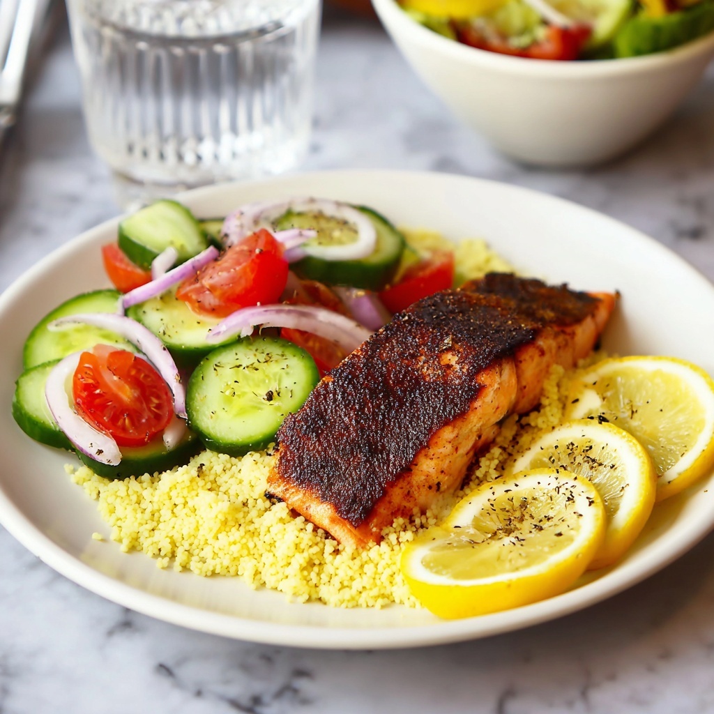 Sweet Sumac Salmon is a flavorful and vibrant Middle Eastern-inspired main dish featuring tender salmon fillets glazed with a tangy and sweet mixture of pomegranate molasses, sumac, and aromatic spices. This easy oven-baked recipe offers a perfect balance of sweet, tart, and smoky notes, making it an ideal weeknight dinner served with fresh lemon wedges and parsley.