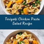 This Teriyaki Chicken Pasta Salad is a flavorful and refreshing dish perfect for a quick lunch or a light dinner. Combining tender cooked chicken, farfalle pasta, crisp baby spinach, sweet mandarin oranges, crunchy peanuts, and dried cranberries, all tossed in a tangy teriyaki dressing, this salad delivers a delightful balance of sweet, savory, and fresh flavors in every bite.