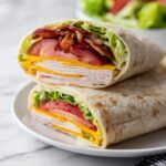 This Turkey Ranch Club Wrap combines tender turkey breast, crispy bacon, and fresh vegetables with creamy ranch dressing and shredded cheddar cheese all wrapped in a soft flour tortilla. It’s a quick and delicious lunch option that requires no cooking, making it perfect for busy days or on-the-go meals.