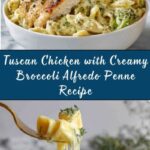 This Tuscan Chicken with Creamy Broccoli Alfredo Penne is a comforting and flavorful dish combining tender chicken breasts, al dente penne pasta, and a rich, creamy Alfredo sauce enhanced with sun-dried tomatoes, fresh spinach, and Parmesan cheese. Perfect for a cozy weeknight dinner, this recipe offers a delightful balance of savory flavors and creamy textures in under 35 minutes.