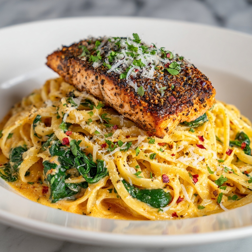 If you are craving a dish that feels like a warm Italian hug on your plate, then this Tuscan Salmon and Mafaldine Pasta Recipe is exactly what you need. Imagine perfectly seared salmon nestled alongside ruffled mafaldine pasta, all bathed in a luscious, creamy sauce brightened by sun-dried tomatoes, fresh spinach, and bursts of cherry tomatoes. This recipe brings together simple, fresh ingredients into an elegant meal that is both comforting and impressive – perfect for family dinners or sharing with friends over a glass of wine.