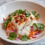 Plate the sticky rice in a generous mound, lay a perfectly seared haddock fillet on top, and serve alongside a hearty helping of the crunchy, herb-filled salad. This Vietnamese-Style Haddock with Sticky Rice and Crunchy Salad Recipe strikes a delightful balance that’s sure to impress anyone you serve.