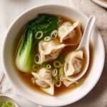 Wonton soup is a light and savory Chinese classic featuring delicate pork-filled dumplings served in a clear, flavorful broth with green onions and sesame oil. This comforting dish is surprisingly easy to make at home and can be enjoyed as an appetizer or a full meal.