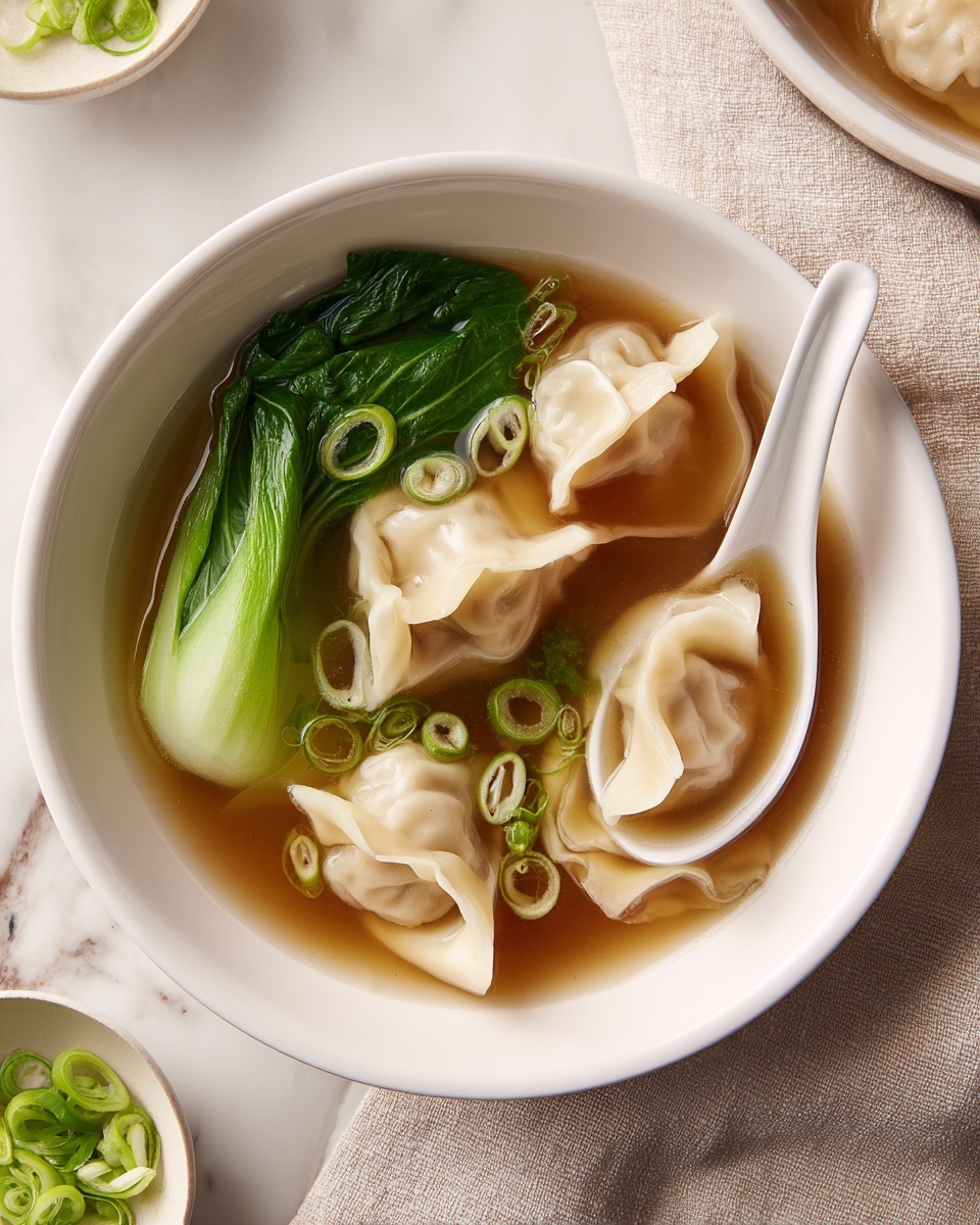 • Soy sauce: Adds a deep umami flavor both inside the wontons and in the broth.